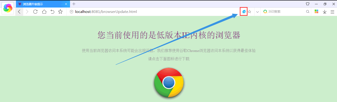 兼容模式以ie图标展示,参照上文提供的方法都能正确的切换到极速模式